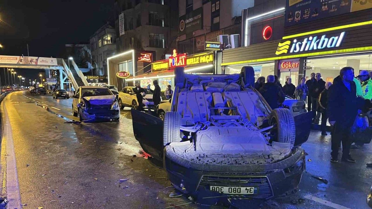 Küçükçekmece’de E5 karayolu yan yolda bariyerlere çarpan otomobil, ardından başka bir araca çarpıp takla attı. Kazaya karışan dört araçta hasar meydana gelirken, 3 kişi yaralandı.