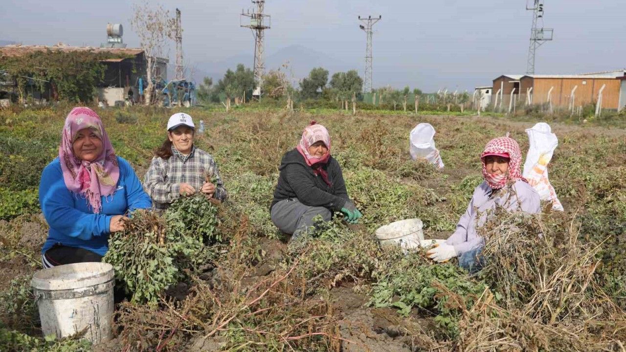 Türkiye’nin önemli tarım şehirlerinden olan Hatay’da yer fıstığı hasadı başladı. Antakya ilçesi Arpahan Mahallesi’nde çiftçilik yapan Yusuf Fakıoğlu, 10 dönümlük arazisinde akrabaları ve işçilerle yer fıstığı hasadı yapıyor. Kuraklık nedeniyle yeteri büyüklüğe ulaşamayan ve olgunlaşmayan yer fıstığında, geçen yıla göre verim yarı yarıya düştü. Hasadını yaptığı yer fıstığının tarladan 60 TL ile 100 TL’de aralığında satıldığını söyleyen Fakıoğlu, "Tarladan market raflarına giden yer fıstığı 120 TL ile 150 TL arasında alıcı buluyor" dedi.