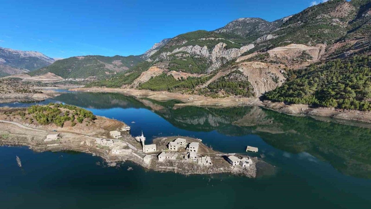 Mersin’in Anamur ilçesinde bulunan Alaköprü Barajı’nda bölgede yaşanan kuraklık nedeniyle su yaklaşık yüzde 80 oranında azaldı 11 yıl önce baraja gömülen köy evleri ve cami tamamen ortaya çıktı.