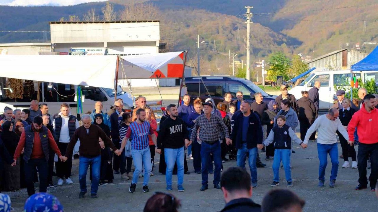 Düzce’de ikincisi düzenlenen Kuymak Festivali’nde soğuk havaya rağmen yüzlerce kişi horon oynadı.