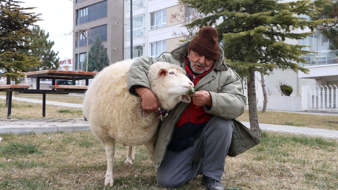 Batuhan KILIÇ/ESKİŞEHİR,(DHA)-ESKİŞEHİR'de yaşayan Halil İbrahim Şavır (74), pandemi döneminde 3 aylıkken aldığı koyununu kesemeyince beslemeye başladı. Yaklaşık 4 yıldır 'Pamuk' ismini verdiği koyunla dolaşan Şavır, "Onu görmeyince özlüyorum, evimizin kızı oldu. Bir yere giderken 'Kızım gidiyorum. Burada bekle' demezsem, sürekli bağırıp, komşuları rahatsız ediyormuş. Bazen 'Kızım geç kalırsam git, yerinde yat' diyorum. O da gidip kapıyı örtüp yatıyor" dedi.