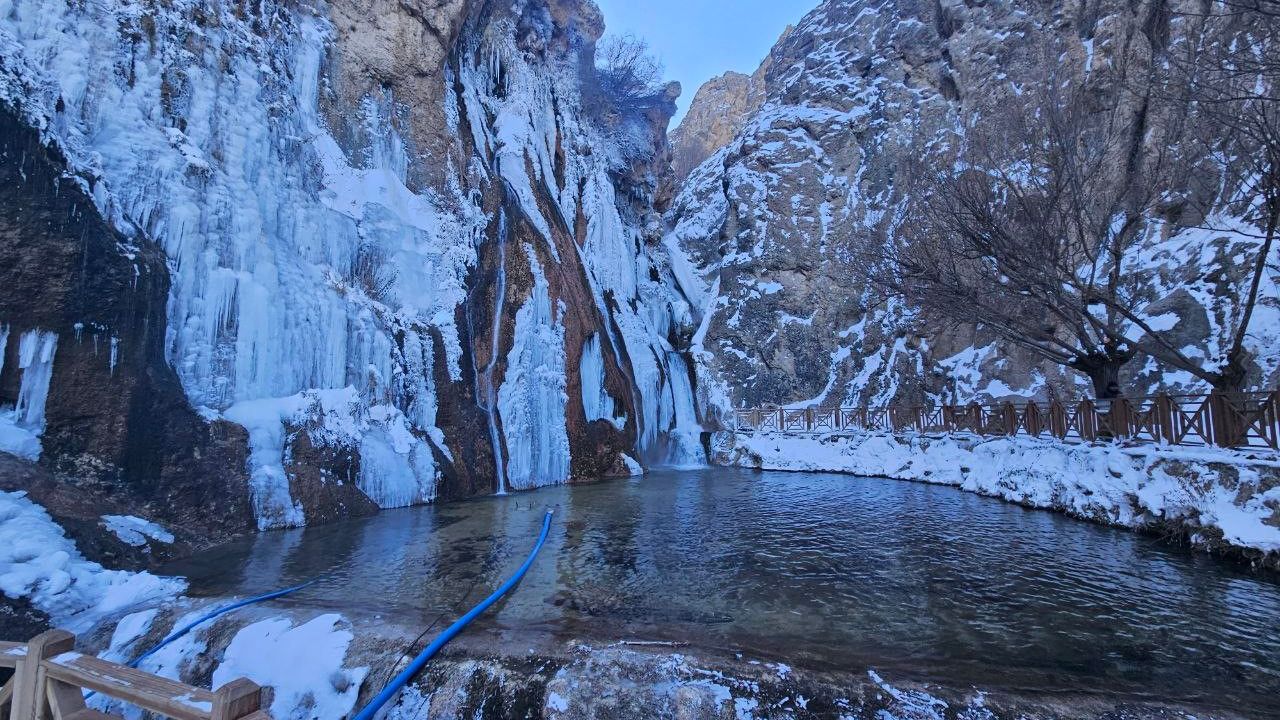 Malatya'nın Darende ilçesinde bulunan Gürpınar Şelalesi, soğuk hava nedeniyle kısmen buz tuttu.