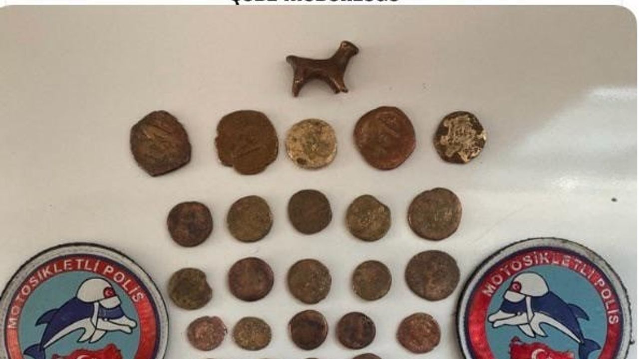 Mardin'de polis ekiplerince düzenlenen operasyonda, tarihi eser niteliğinde olduğu değerlendirilen 45 adet sikke ile hayvan figürlü heykel ele geçirildi. Olayla ilgili 2 şahıs gözaltına alındı.