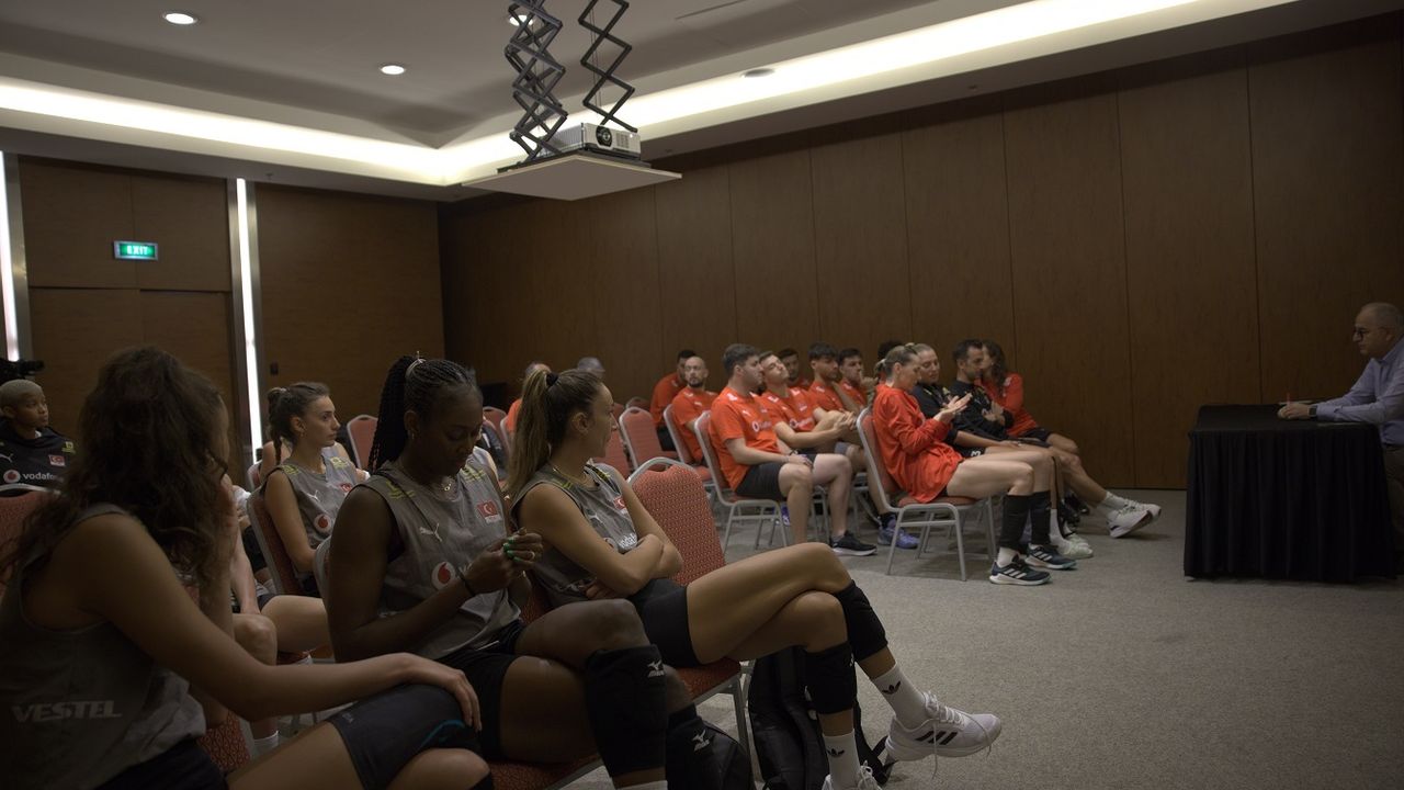 Kampın ikinci gününde Türkiye Voleybol Federasyonu (TVF) Başkanı Mehmet Akif Üstündağ, A Milli Kadın Voleybol Takımı oyuncuları ve teknik ekibi ile bir araya gelerek destek verdi.