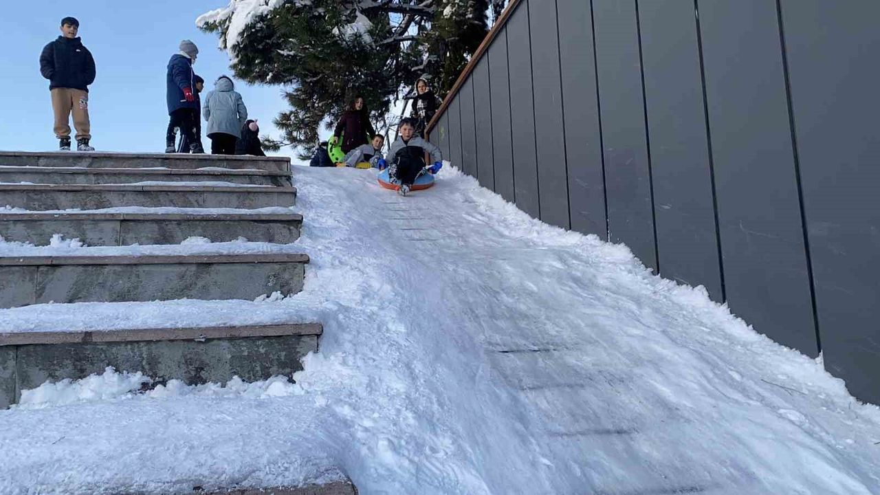 Bolu'da hafta boyunca etkili olan kar yağışı sebebiyle kar kalınlığı şehir merkezinde 65 santimetreyi geçti. Hafta boyunca 1 Ocak resmi tatil hariç, diğer günlerde Bolu Valiliği tarafından okullar tatil edildi. Okulların tatil olmasını ve kar yağışını fırsat bilen çocuklar, şehrin birçok noktasını kayak pistine çevirdi. Ellerine şambrel, poşet ve kızaklarını alan minikler, tepe noktalarda kayarak karın keyfini çıkardı. İzzet Baysal Caddesi Kent Meydanın'da merdivenleri dolduran kar sebebiyle rampayı kayak pisti olarak kullanan çocuklar doyasıya eğlendi.