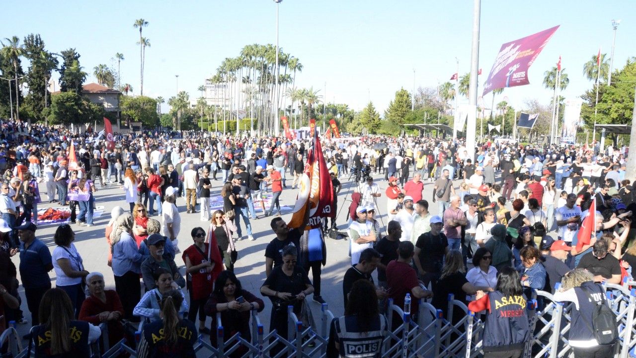 Mersin Emek ve Demokrasi Platformu tarafından 1 Mayıs Emek ve Dayanışma Günü dolayısıyla düzenlenen etkinlik kapsamında merkez Yenişehir ilçesi Millet Bahçe eski Tevfik Sırrı Gür Stadyumu önünde binlerce kişi bir araya geldi. Ellerinde pankart ve dövizlerle slogan atan vatandaşlar davul- zurna eşliğinde yürüdü.
