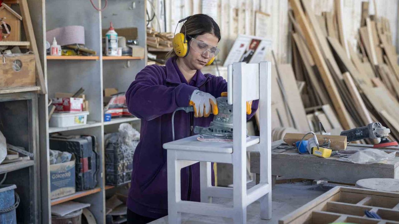 Mersin Büyükşehir Belediyesi Kadın ve Aile Hizmetleri Dairesi Başkanlığı'nda görev yapan Marangoz Ustası Teslime Özdemir, Tarsus Gençlik Kampı Geri Dönüşüm Atölyesi'nde 2020'den bu yana, birimlerin malzemelerini ürettiklerini anlatarak, 'Birimlerimizden gelen ürünlerin bakım, onlarım ve tamir işlerini bu atölyede yapıyoruz. Geri dönüşüm atölyemizde birimlerimizin ihtiyacı olan masa, sandalye, dolap ve büro malzemelerinden tutun, akla gelecek her türlü ihtiyacı üretiyoruz. 2020'den 2025 yılına kadar daire başkanlığımıza bağlı 40 birim açıldı. Bu birimlerden 38'inin malzemeleri burada üretildi. Diğer dairelerden gelen talepleri de elimizden geldiğince yerine getirmeye çalışıyoruz' ifadelerini kullandı.