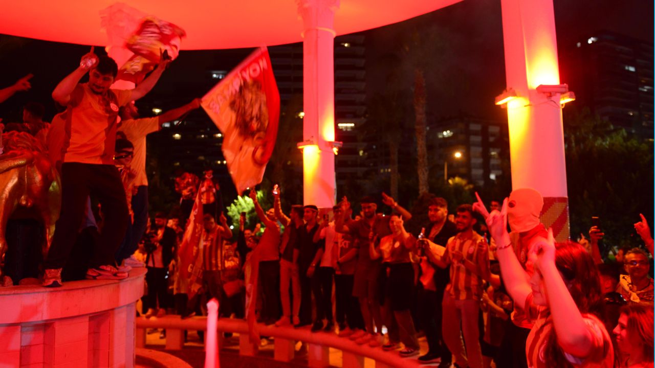 Ziraat Türkiye Kupası final maçında Trabzonspor ile Galatasaray, Gaziantep Büyükşehir Stadyumu'nda karşı karşıya geldi. Karşılaşmanın sonunda Galatasaray'ın, karşılaşmada Trabzonspor’u 3-0 mağlup ederek Ziraat Türkiye Kupası’nın sahibi olmasının ardından Mersin’de, taraftar kutlama için sokağa akın etti. Oluşturulan araç konvoylarının yanı sıra yaya olarak merkez Mezitli ilçesi Adnan Menderes Bulvarı üzerinde bulunan Galatasaray Meydanı’nda bir araya gelen taraftarlar, Ziraat Türkiye Kupası sevincini meşaleler yakıp marşlar söyleyerek kutladı. (DHA)