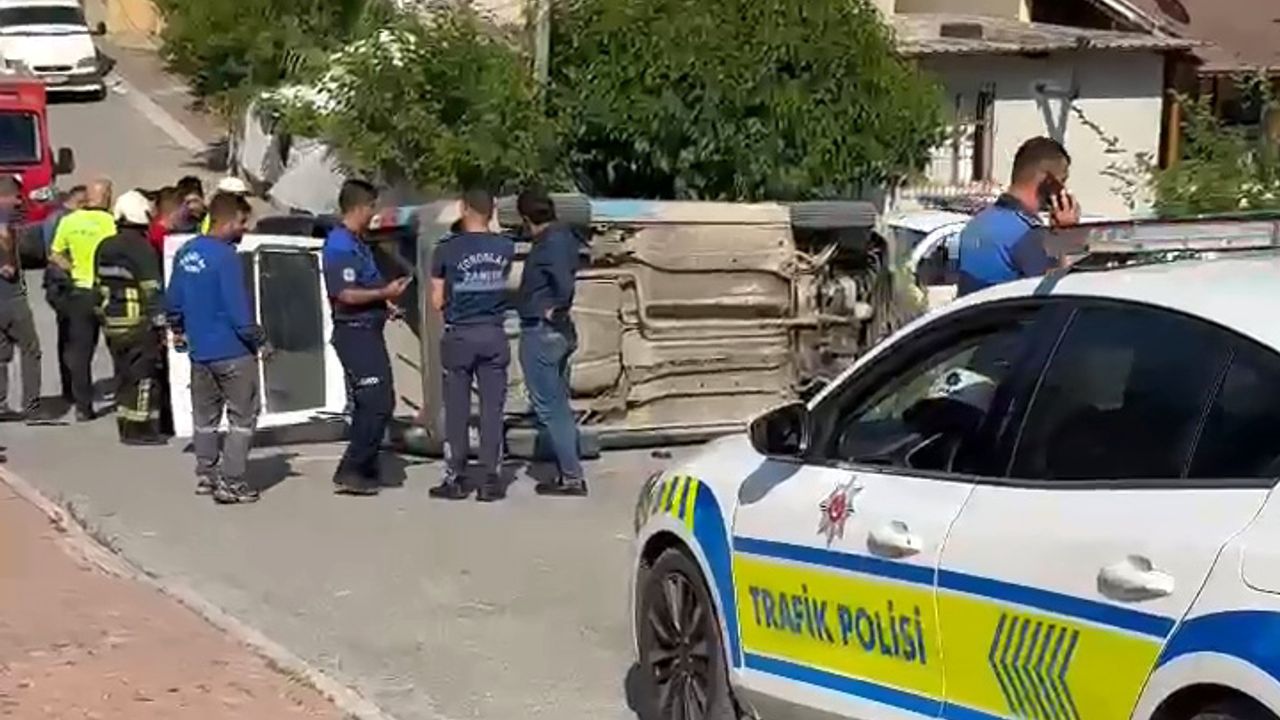 MERSİN, (DHA)- MERSİN’de, motosiklet sürmek için geçerli A1 sınıfı ehliyet ile otomobil kullanan sürücüsünün çarptığı zabıta aracı devrildi. Kazada 1’i zabıta memuru 2 kişi yaralandı.
