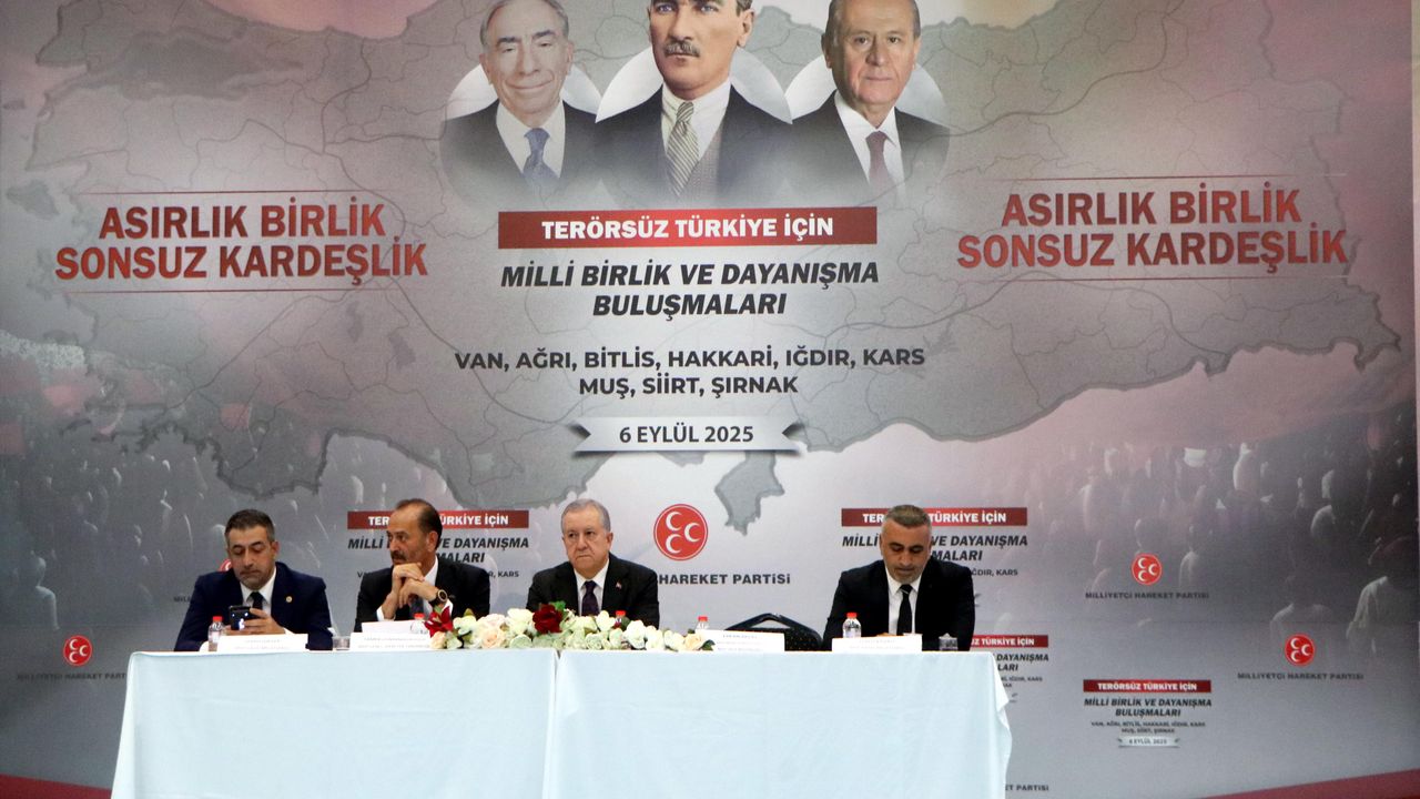 MHP'nin ‘Asırlık Birlik Sonsuz Kardeşlik’ temasıyla düzenlediği ‘Terörsüz Türkiye için Milli Birlik ve Dayanışma Buluşmaları’nın 4'üncüsü Van'da yapıldı. Edremit ilçesindeki Van Evliya Çelebi MTAL Uygulama Oteli Konferans Salonunda Van, Ağrı, Bitlis, Hakkari, Iğdır, Kars, Muş, Siirt ve Şırnak, illerinin katılımıyla düzenlenen toplantıya, MHP Genel Başkan Yardımcısı Sadir Durmaz, Genel Sekreter Yardımcısı İzmir Milletvekili Tamer Osmanağaoğlu, TBMM Grup Başkanvekili Manisa Milletvekili Erkan Akçay, Elazığ Milletvekili Semih Işıkver, Afyonkarahisar Milletvekili Mehmet Taytak, Yozgat Milletvekili İbrahim Ethem Sedef, Hatay Milletvekili Lütfi Kaşıkçı, Şanlıurfa Milletvekili İbrahim Özyavuz ve MYK MDK üyeleri, MHP Van İl Başkanı Salih Güngöralp ve partililer katıldı.