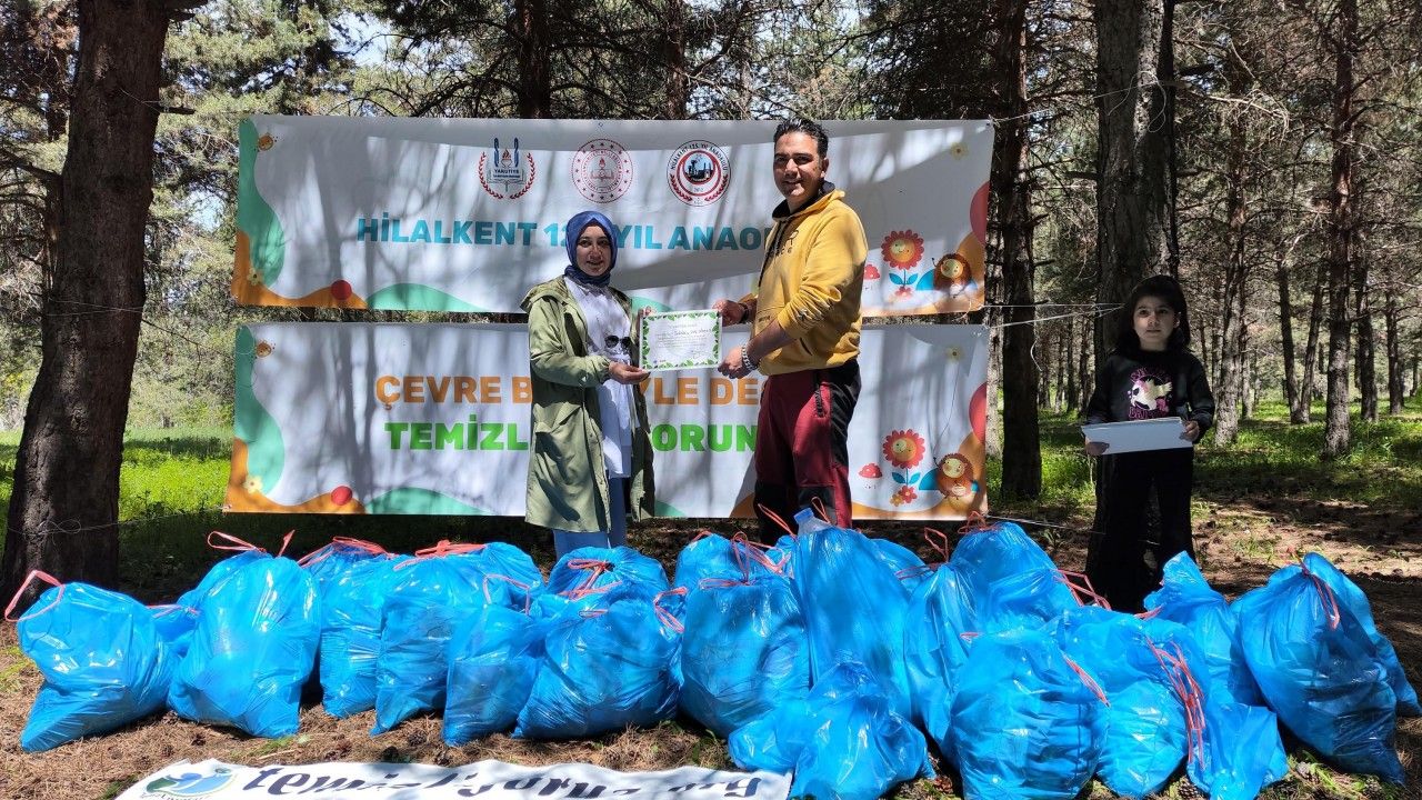 Çöp dolu poşetleri gösteren Hafsa Tuana Şahin, "Büyüklerimiz sakın çevreyi kirletmeyin, küçükler olarak temizliyoruz" derken; 2 poşet çöp topladığını belirten Ömer Asaf Ay, "Doğayı tedavi etmek için buradayız. 2 poşet çöp topladım. Sigara paketleri, içecek kutuları vardı" diye konuştu. Hilalkent 125'inci Yıl Anaokulu Müdür Yardımcısı Tuba Nur Kaya, "Sıfır Atık projesi kapsamında çocuklarımıza temiz çevre bilincini kazandırmak istedik. Okul öğrencilerimize küçük yaştan bu bilinci vermeyi istiyoruz" dedi.