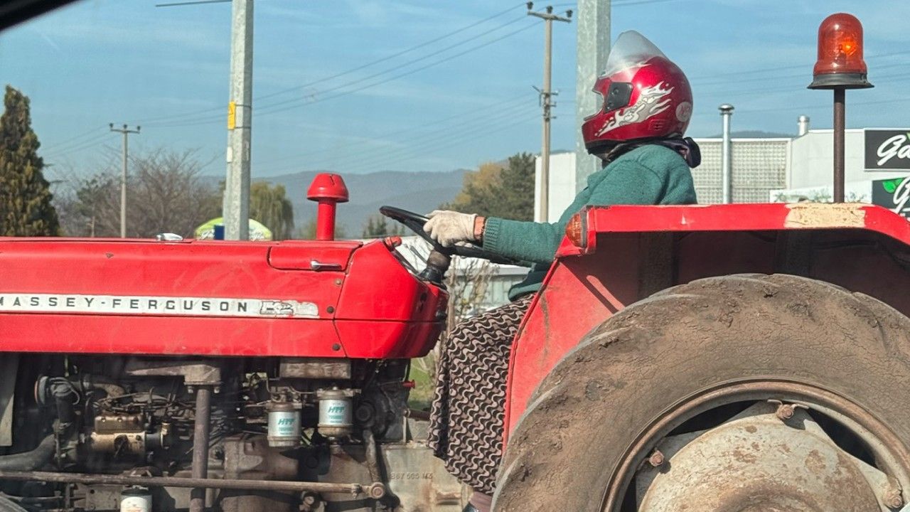 Bolu’da bir kadın D-100 kara yolunda traktör kullanırken fotoğraflandı. Kadın şoförün kendini korumak için motosiklet kaskı taktığı ve eldivenle de ellerini koruduğu görüldü. Bunun üzerine bir vatandaş o kadını fotoğraflayarak sosyal medya hesabından paylaştı.