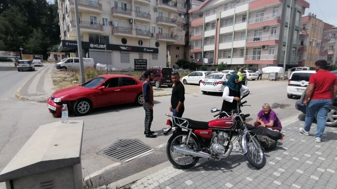 Antalya’nın Manavgat ilçesinde motosiklet ile otomobilin çarpışması sonucu meydana gelen kazada motosiklette yolcu olarak bulunan kadın yaralandı.