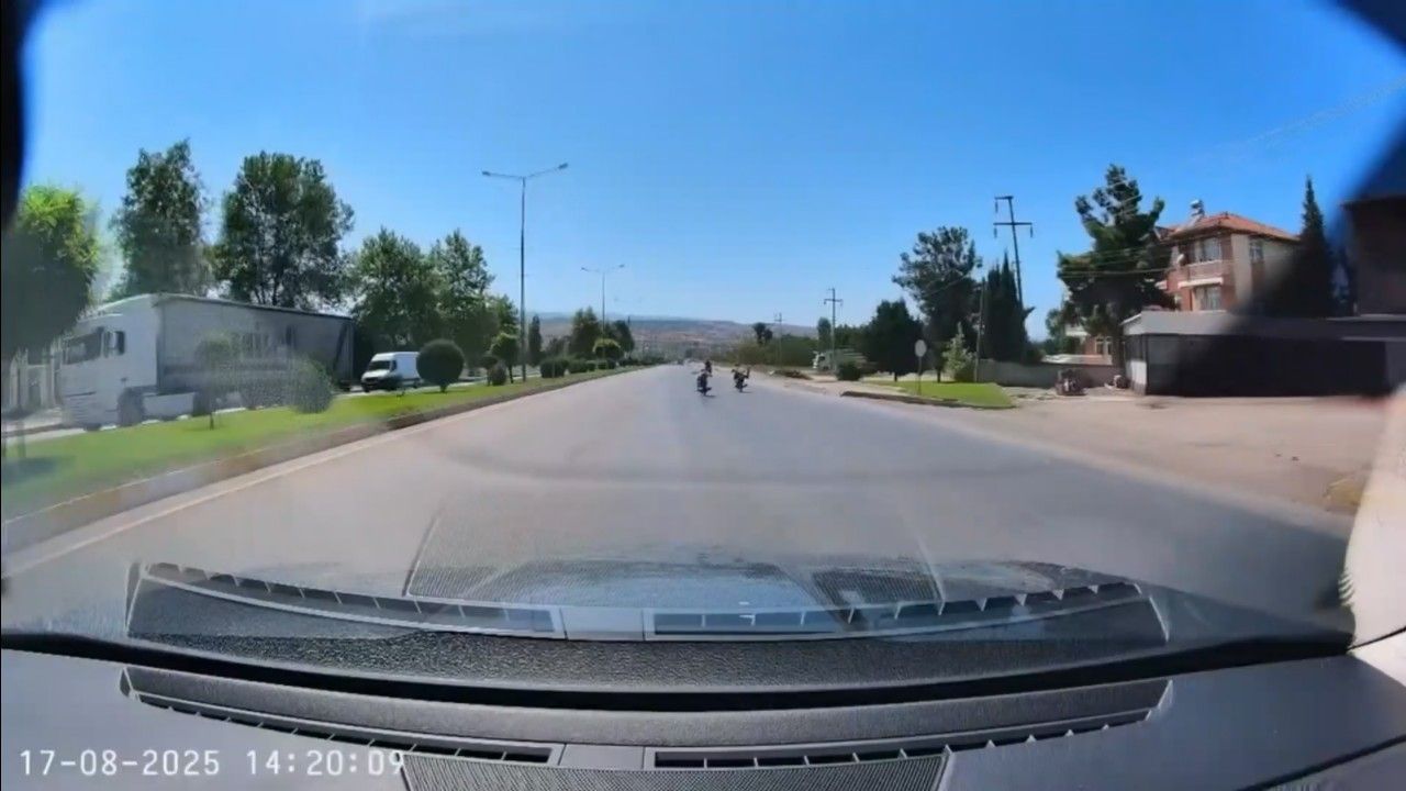D-100 kara yolu Recep Tayyip Erdoğan Bulvarı’nda saat 14.00 sıralarında iki motosiklet sürücüsü yarışmaya başladı. Motosikletlerini üzerlerine yüzüstü yatarak kullanılan sürücüler, bir süre sonra gözden kayboldu. O anlar, başka bir aracın kamerasına yansıdı. (DHA)