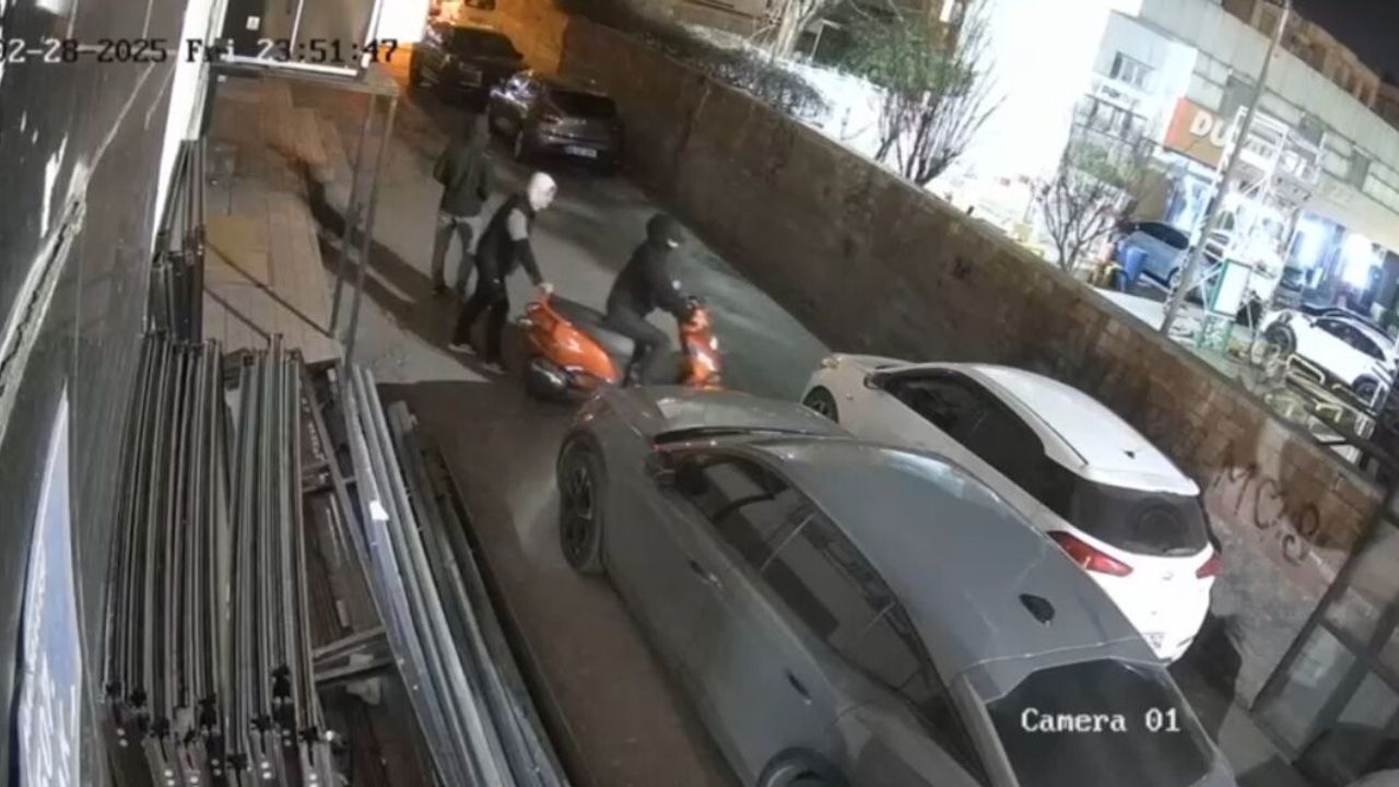 Olay, 28 Şubat'ta gece saatlerinde Gap Mahallesi'nde meydana geldi. Şüpheli 3 kişi, park halindeki motosikletin yanına gelip, bir süre bekledi. Ardından şüphelilerden biri motosiklete binip, diğeri de iterek götürdü. Hırsızlık, çevredeki iş yerinin güvenlik kamerasına yansıdı.