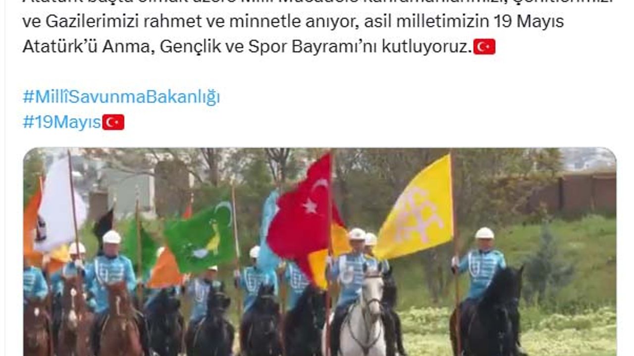 MSB'nin sosyal medya hesabından paylaşılan klipte, 'Atabarı' türküsü kullanıldı. Görüntülerde 16 büyük Türk devletinin bayrağını taşıyan atlı askerler, genç sporcular ve Ulu Önder Mustafa Kemal Atatürk'ün gençlerle bir araya geldiği anlar yer aldı. Klip, Anıtkabir'i ziyaret eden vatandaşların görüntüleri ile son buldu. Bakanlığın paylaşımında ise Atatürk'ün 'Bütün ümidim gençliktedir' sözü hatırlatılarak, "Cumhuriyetimizin kurucusu, Başkomutanımız Gazi Mustafa Kemal Atatürk başta olmak üzere Milli Mücadele kahramanlarımızı, şehitlerimizi ve gazilerimizi rahmet ve minnetle anıyor, asil milletimizin 19 Mayıs Atatürk'ü Anma, Gençlik ve Spor Bayramı'nı kutluyoruz" denildi. (DHA)