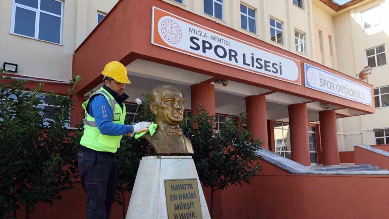 Ara tatil döneminde Muğla Büyükşehir Belediyesi ekipleri, 5 ilçede toplam 8 okulda bakım ve onarım çalışmaları gerçekleştirdi. Öğrencilerin ve öğretmenlerin kullanımına sunulmak üzere yeni Atatürk büstleri ve Atatürk köşeleri de hazırlandı. Büyükşehir Belediyesi il genelinde185 adet Atatürk Büstü, 84 adet Atatürk Köşesi okullara kazandırıldı.