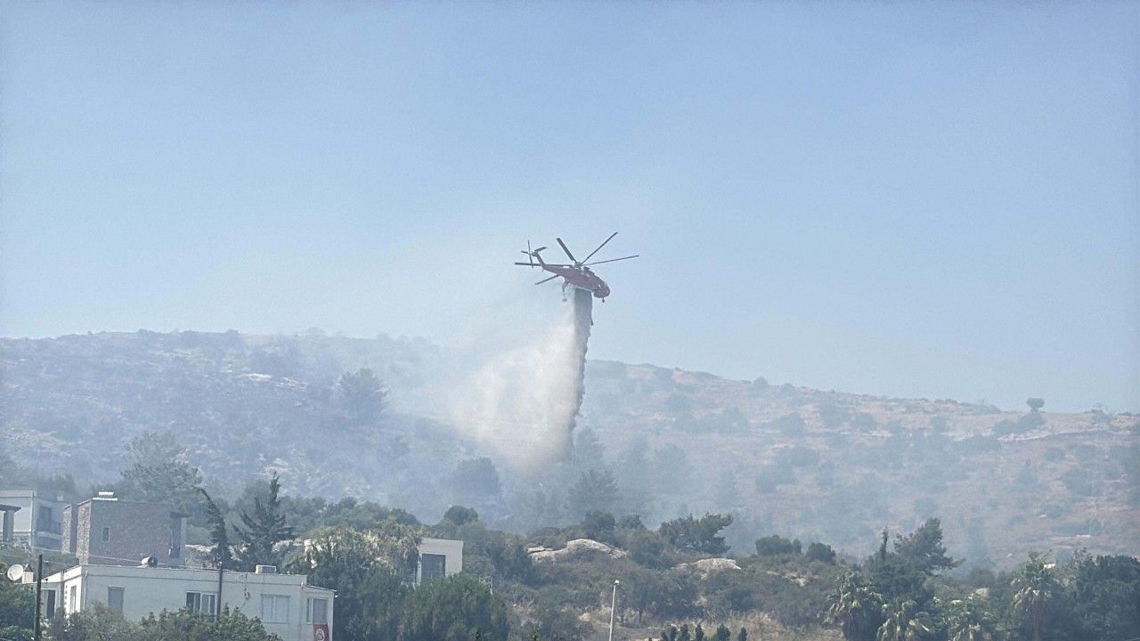 Göltürkbükü Mahallesi'nde makide çıkan yangına müdahale 5 helikopter, 3 uçak, 10 arazöz, 60 orman işçisi ile çok sayıda itfaiye ekipleri ile sürüyor. Bodrum İlçe Jandarma Komutanlığı'na bağlı ekipler tarafından bölgede yapılan incelemede yangının inşaatta yapılan çalışmada kaynak makinesinden çıktığının tespit edildiği belirtildi. Olayla ilgili inşaatta kaynak yaptığı belirlenen 1 şüpheli gözaltına alındı. Şüphelinin işlemleri sürüyor. (DHA)