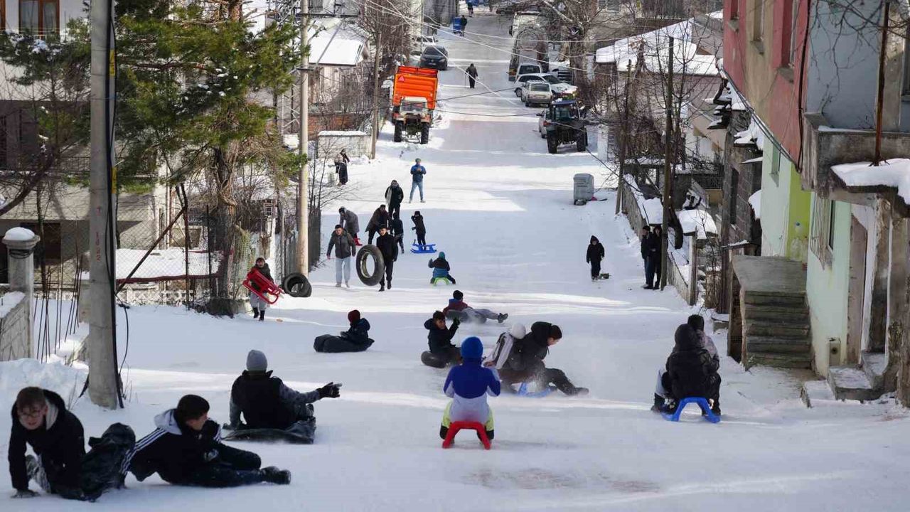 Kızaklarla kayan çocukların eğlenceli anları kameralara yansırken, mahalledeki büyükler de çocukları izleyerek keyifli anlara ortak oldu. Her yıl bu yokuşta kaydıklarını belirten çocuklar, burada çok eğlendiklerini ifade etti.