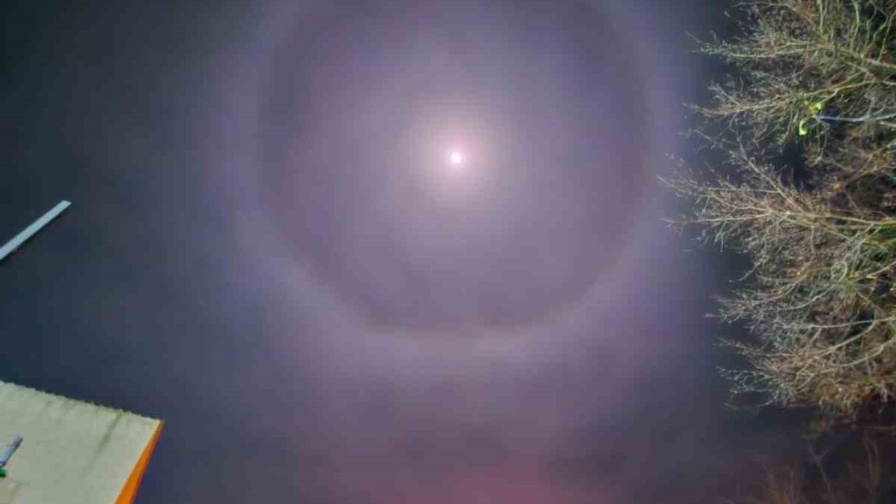 Tekirdağ’ın Muratlı ilçesinde akşam saatlerinde gökyüzüne bakan vatandaşlar, Ay’ın etrafında oluşan parlak ve tam dairesel bir halka ile karşılaştı. Görsel bir şölen sunan bu doğa olayı, bilimsel adıyla "22° Ay Halesi" olarak biliniyor.