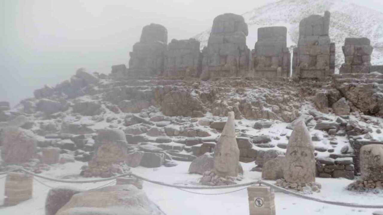 UNESCO Dünya Kültür Mirası Listesi’nde yer alan 2 bin 206 metre yükseklikteki Nemrut Dağı’na kar yağdı. Mart ayında yağan kar sonrası Nemrut dağı beyaza bürünmüş ve daha sonra kar erimişti.