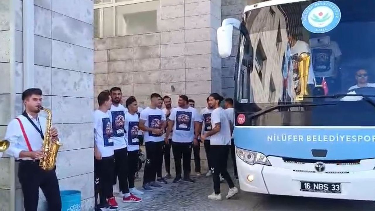 -Takımın kutlama alanına bando eşliği ile gelmesi detay