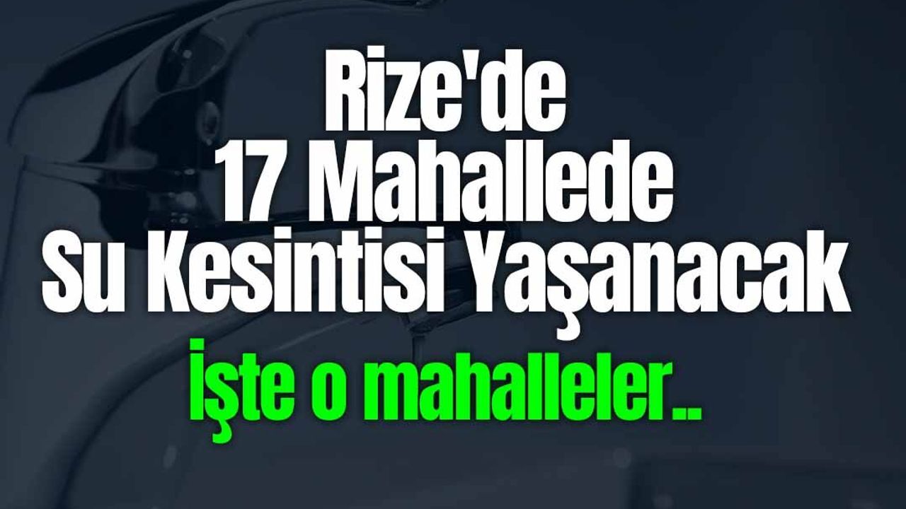 Rize'de bakım onarım çalışmaları nedeniyle 4 Ocak Perşembe günü (yarın) saat 09.00-17.00 saatleri arasında 17 mahallenin bazı bölgelerine su verilemeyecek.