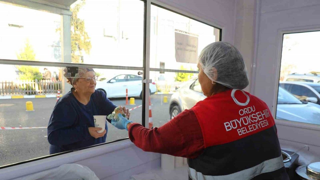 Ordu Büyükşehir Belediyesi tarafından hastaneye gelen vatandaşlara ücretsiz olarak sıcak çorba ikramı yapılıyor.