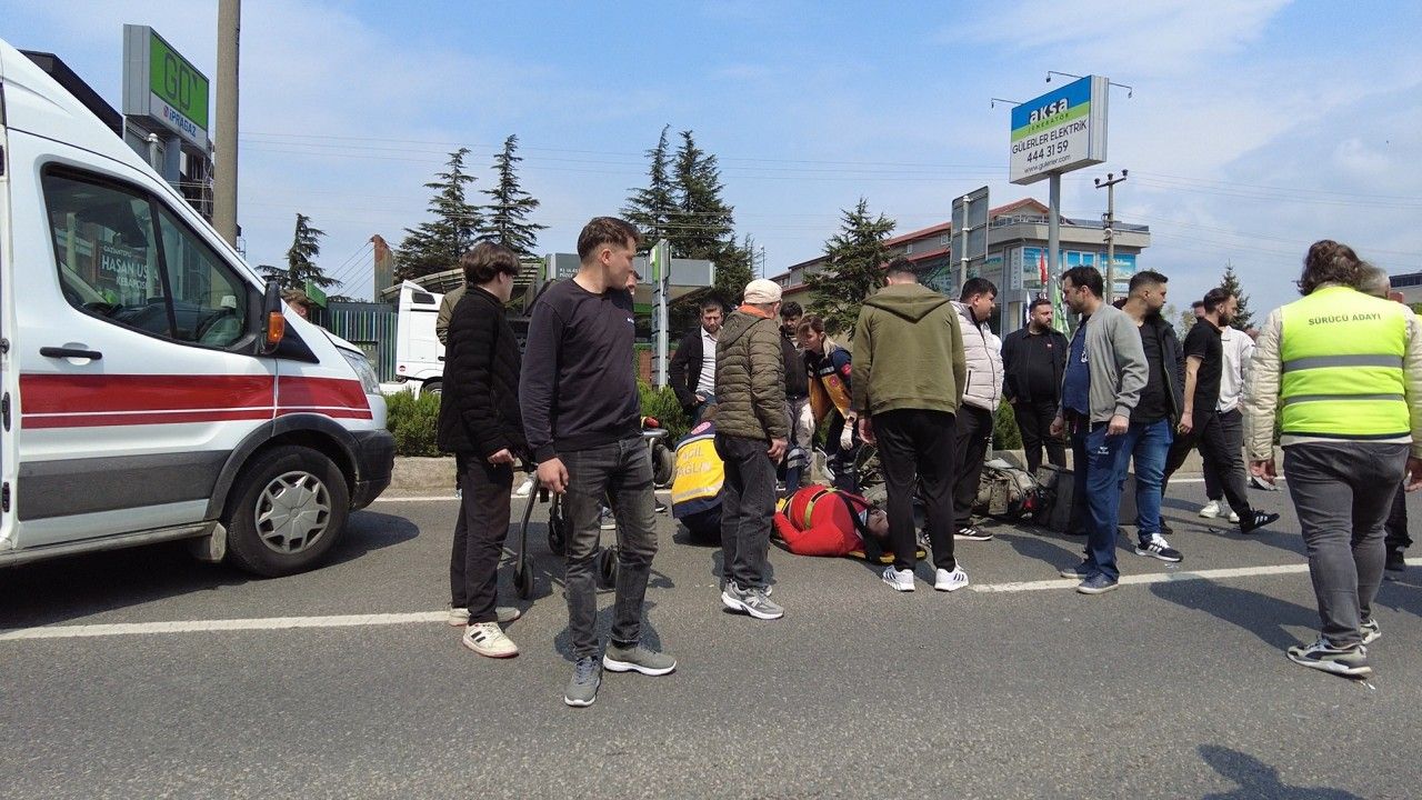 Kaza, saat 14.00 sıralarında D-100 kara yolu adliye mevkisinde meydana geldi. Ankara yönüne giden Caner Erden idaresindeki 81 AEL 770 plakalı otomobil, yoldan karşıya geçmeye çalışan Sinan Çoban’ın kullandığı 81 AEJ 575 plakalı motosiklete çarptı. Kazada Sinan Çoban, Caner Erden ile hamile olan eşi Pınar Erden hafif yaralandı. İhbar üzerine olay yerine sağlık ekibi sevk edildi. Yaralılar, sağlık ekibinin müdahalesinin ardından Atatürk Devlet Hastanesi’ne kaldırılarak tedavi altına alındı.