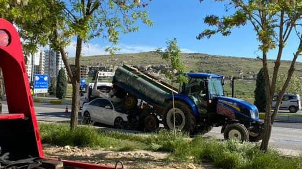 Salih KESKİN/MARDİN, (DHA)- MARDİN'in Artuklu ilçesinde otomobilin traktöre bağlı su tankerinin altına girdiği kazanın güvenlik kamerası görüntüsü ortaya çıktı.