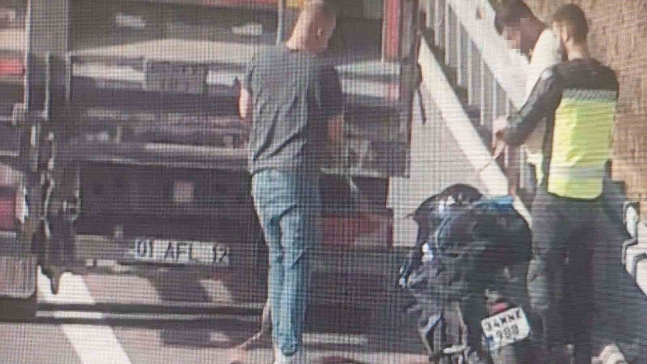 Nevşehir İl Jandarma Komutanlığı Otoyol Jandarma Komutanlığı ekipleri Ankara-Niğde Otoyolu Derinkuyu-Kuyulutatlar mevkiinde, bir motosikletin kamyona iple bağlanarak çekildiğini tespit etti.
