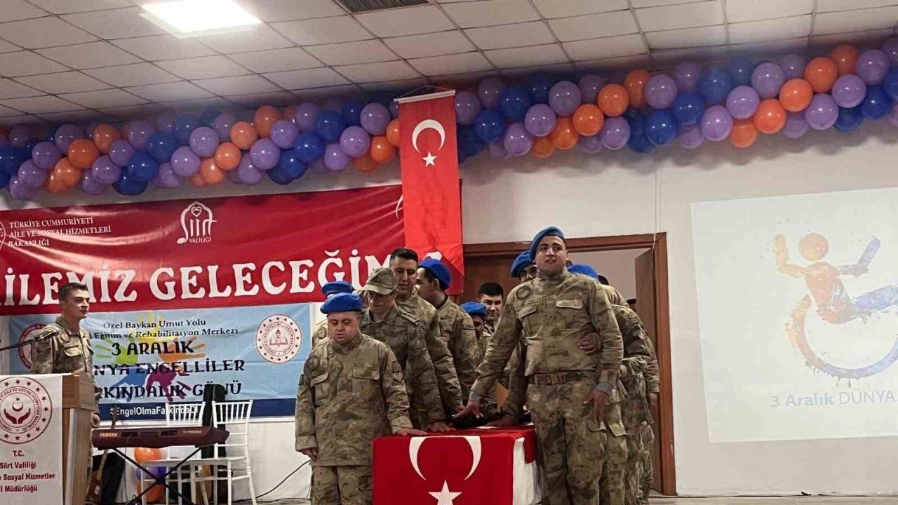 Siirt’te 3 Aralık Dünya Engelliler Günü’nde özel bireyler askeri kamuflaj giyerek yemin törenine katıldı.