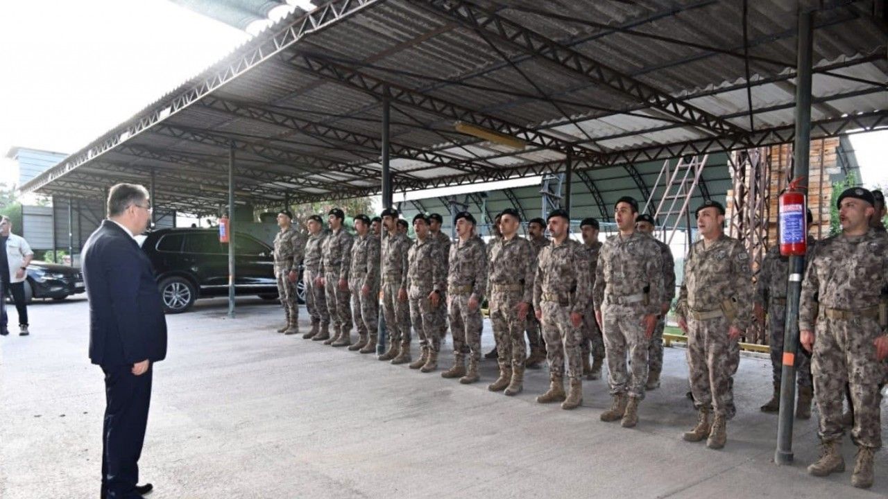 Osmaniye Emniyet Müdürlüğü Özel Harekat Şube Müdürlüğü'nde gerçekleştirilen törene; Vali Erdinç Yılmaz, İl Jandarma Komutanı Jandarma Kıdemli Albay Şener Kaytez, İl Emniyet Müdürü Mehmet Sarıbuva, emniyet müdür yardımcıları, şube müdürleri, polisler ve görev yapacak personelin aileleri katıldı. Törende konuşan Vali Yılmaz, polislerin kutsal bir göreve çıktıklarını vurgulayarak, "Allah yolunuzu açık etsin. Allah ayağınıza taş değdirmesin. Siz bizim gururumuzsunuz. Vatan sizden hizmet bekler, her zaman da en güzelini yaparsınız. Sizlerle gurur duyuyoruz. Dualarımız sizlerle. Güle güle gidin, kazasız belasız geri dönün" dedi. Duaların ardından Özel Harekat polisleri, mesai arkadaşları ve aileleriyle vedalaşarak Suriye'ye gitmek üzere yola çıktı. (DHA)