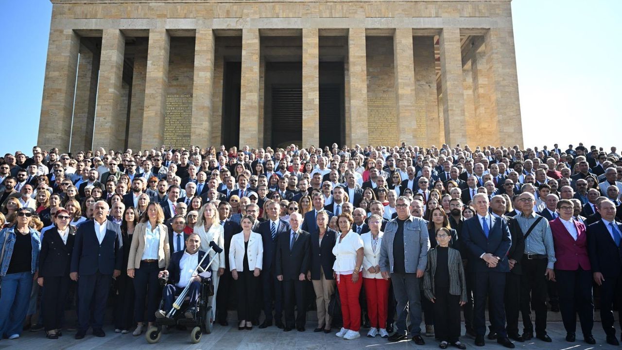 Özgür Özel, parti yöneticileri ve milletvekilleri, Anıtkabir'i ziyaret etti. Özel başkanlığındaki heyet, Aslanlı Yol'dan yürüyerek Gazi Mustafa Kemal Atatürk'ün mozolesine geldi. Özel'in kırmızı ve beyaz karanfillerden oluşan çelengi mozoleye bırakmasının ardından saygı duruşunda bulunuldu. Özel ve beraberindeki heyet, Anıtkabir önünde fotoğraf çektirdikten sonra Misak-ı Milli Kulesi'ne geçti. Anıtkabir Özel Defteri'ni imzalayan Özel, şunları yazdı: