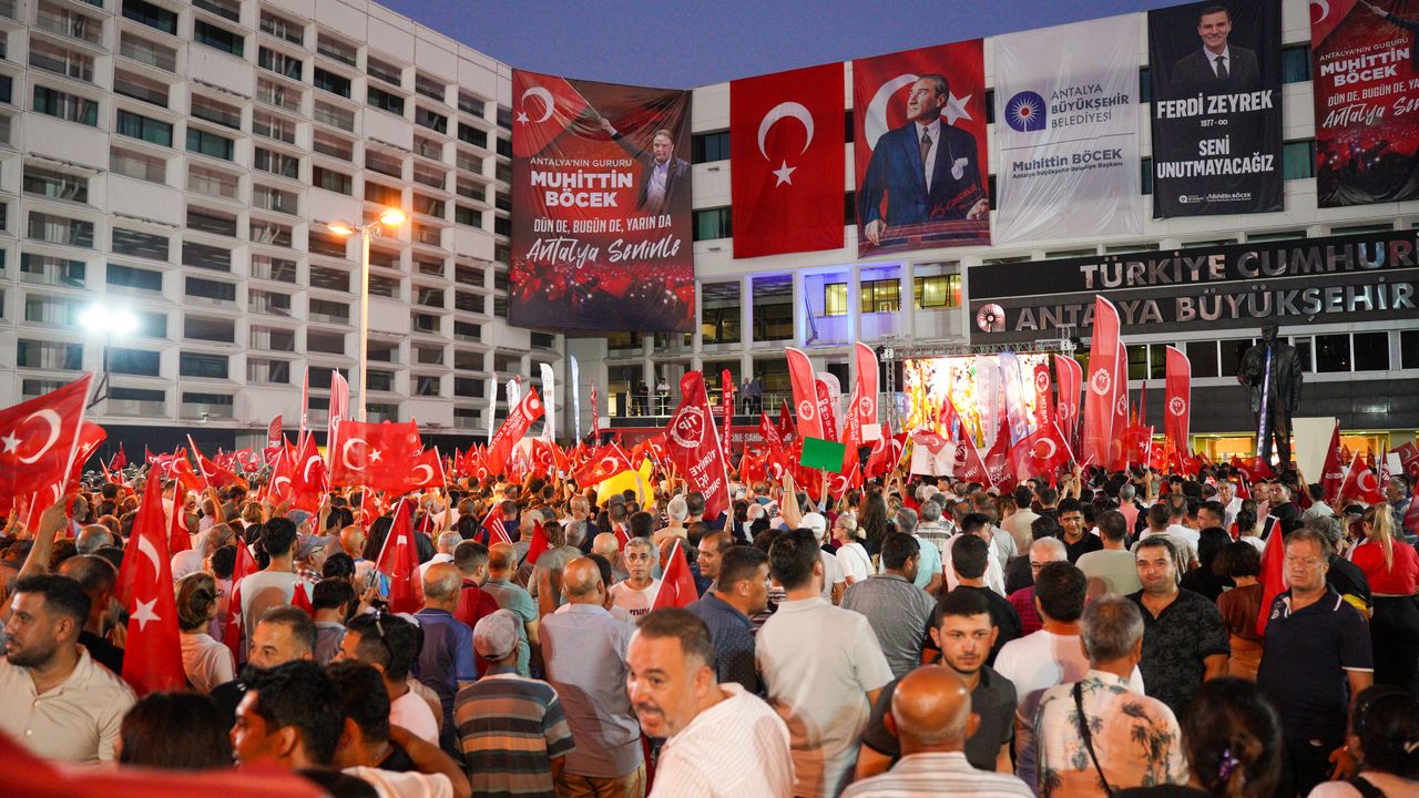 CHP Genel Başkanı Özgür Özel, Antalya Büyükşehir Belediye Başkanı Muhittin Böcek’i cezaevinde ziyaret etmek ve ‘Halk Buluşması’ kapsamında geldiği Antalya’da düzenlenen mitingde konuştu. Saat 20.30’da ‘Millet İradesine Sahip Çıkıyor’ mitinginin düzenlendiği alana Antalya Büyükşehir Belediyesi’ne cezaevinde tutuklu Muhittin Böcek’in resminin bulunduğu ve üzerinde ‘Antalya’nın gururu Muhittin Böcek. Dün de, bugün de, yarın da Antalya seninle’ yazılı afişler asıldı. Alanda toplanan vatandaşlara seslenen Özel, yörüklerin evladına sahip çıkmaya, karanlığa karşı bir mum yakmaya, kaybedecek tek şey olan o zincirleri kırıp atmaya geldiklerini söyledi.