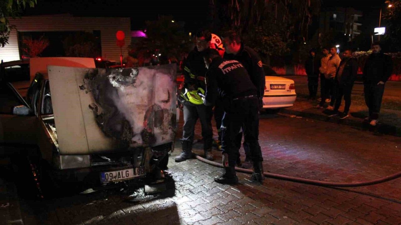 Yangın, Efeler ilçesi Cumhuriyet Mahallesi 1997 Sokak üzerinde saat 21.00 sıralarında meydana geldi. Edinilen bilgiye göre S.B.’ye ait park halindeki 09 ALG 488 plakalı otomobilde henüz bilinmeyen bir nedenle yangın çıktı. Kısa sürede büyüyen yangın aracın ön bölümünü sardı. Alevleri fark eden vatandaşlar durumu 112 Acil Çağrı Merkezi’ne bildirdi. İhbar üzerine bölgeye polis ve sağlık ekipleri sevk edildi. Kısa sürede bölgeye gelen itfaiye ekipleri, alevlere müdahale ederek yangını söndürdü. Soğutma çalışmalarının ardından yangının çıkış nedeninin belirlenmesi için inceleme başlatılırken, yangının otomobilin elektrik aksamından çıkmış olabileceği tahmin ediliyor.