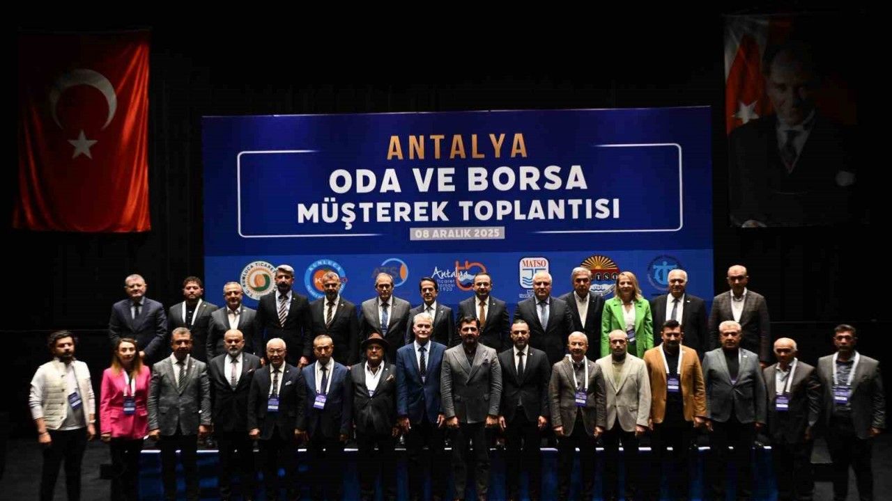 Antalya Oda ve Borsa Müşterek Toplantısı, Antalya Ticaret Borsası Başkanı Ali Çandır ev sahipliğinde yapıldı. Toplantıya Antalya TSO Başkanı Yusuf Hacısüleyman, Manavgat TSO Başkanı Seydi Tahsin Güngör, Alanya TSO Başkanı Eray Erdem, Kumluca TSO Başkanı Fahri Özen, Kumluca Ticaret Borsası Başkanı Fatih Durdaş, Deniz Ticaret Odası Antalya Şube Başkanı Ahmet Çetin, oda ve borsa Meclis Başkanları ve Yönetim Kurulu üyeleri katıldı.