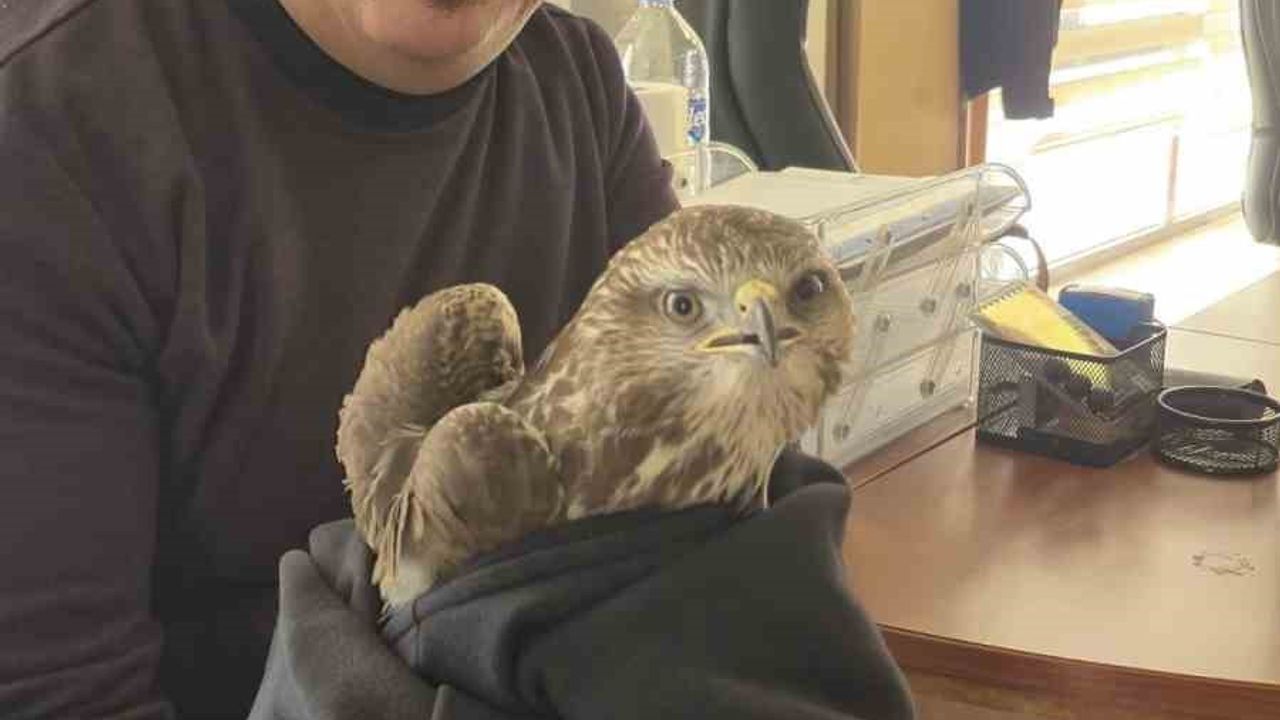 Hatay'da vatandaş tarafından yaralı halde bulunan şahin ekiplere teslim edildi.