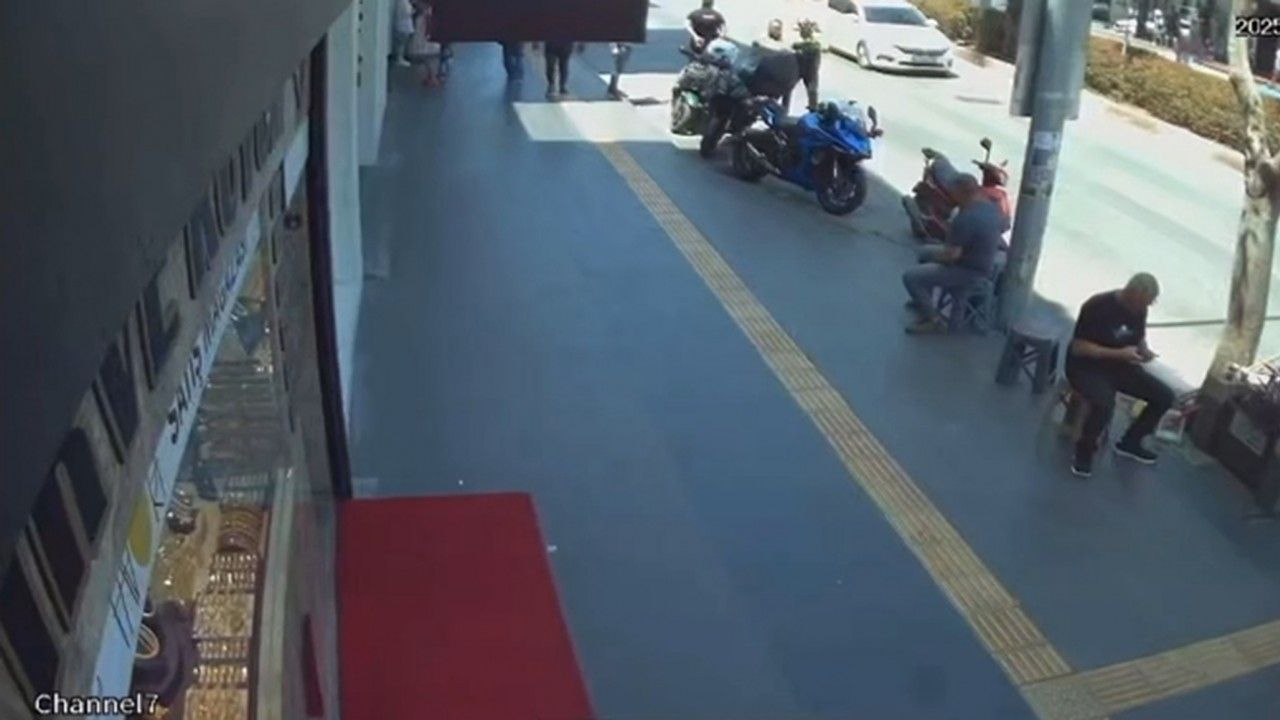 Olay ise çevredeki bir güvenlik kamerasına yansıdı. Görüntüde; polis ekibinin durdurduğu motosikletteki 2 kişinin inmesi, sürücünün polisler inceleme yaptığı sırada bir anda koşarak olay yerinden uzaklaşması yer aldı. (DHA)