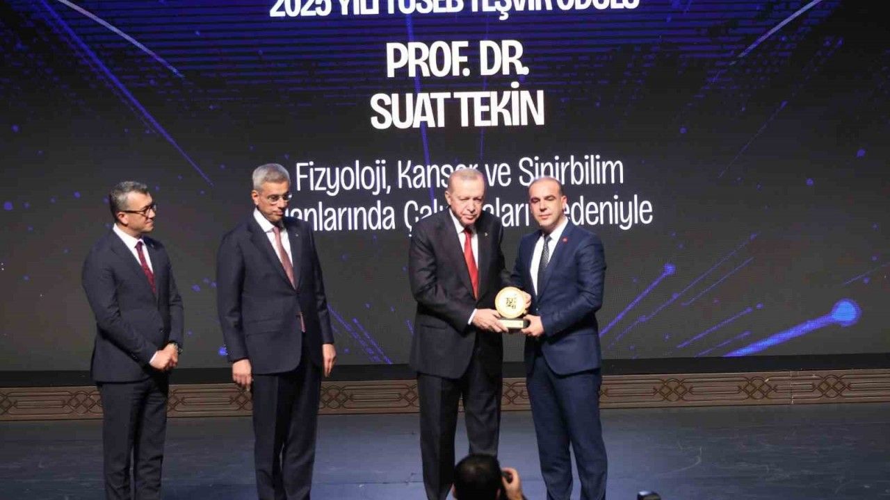 Cumhurbaşkanlığı himayelerinde düzenlenen 11. Türk Tıp Dünyası Kurultayı kapsamında verilen ödüller, Cumhurbaşkanı Recep Tayyip Erdoğan’ın katıldığı törende sahiplerini buldu. Prof. Dr. Suat Tekin, bilimsel başarılarının takdiri niteliğindeki ödülünü Cumhurbaşkanı Erdoğan’ın elinden aldı.