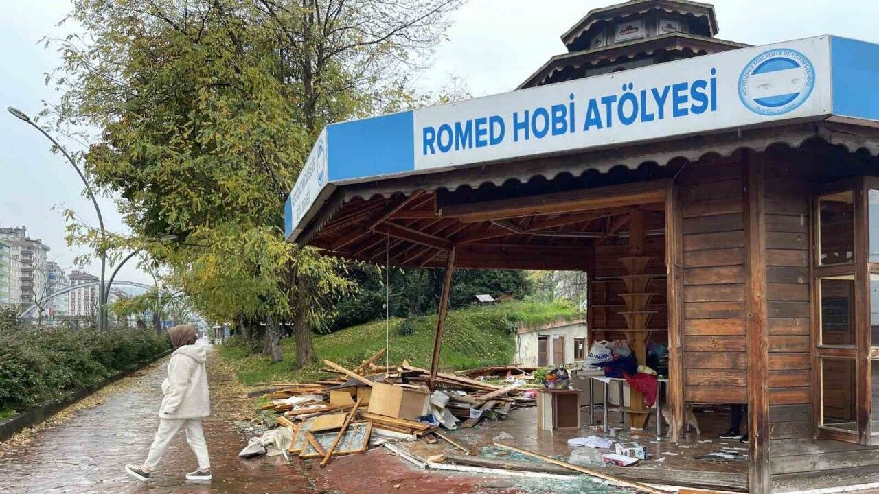 Rize’de hafif ticari araç sürücüsünün direksiyon hakimiyetini kaybederek otizmli çocukların eğitim gördüğü ahşap hobi atölyesine çarpması hasara neden oldu.
