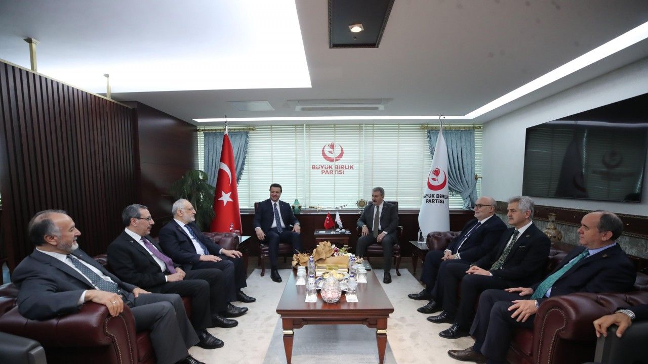 Gizem KARADAĞ-Celal ATALAY/ANKARA, (DHA)- SAADET Partisi Genel Başkanı Mahmut Arıkan beraberindeki heyetle Büyük Birlik Partisi (BBP) Genel Başkanı Mustafa Destici’yi ziyaret etti.