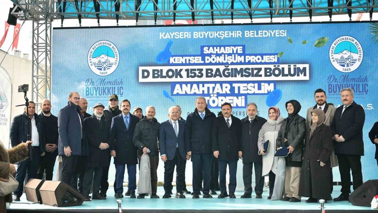 Kayseri Büyükşehir Belediye Başkanı Dr. Memduh Büyükkılıç, TBMM Milli Savunma Komisyonu Başkanı Hulusi Akar ve Kayseri Valisi Gökmen Çiçek ile birlikte daha dirençli bir Kayseri vizyonu doğrultusunda kentte atılan en önemli adımlardan biri olan Sahabiye Kentsel Dönüşüm Projesi kapsamında, ilk etabın son bloğu olan D Blok’ta 153 bağımsız bölümün anahtar teslimini gerçekleştirdi.