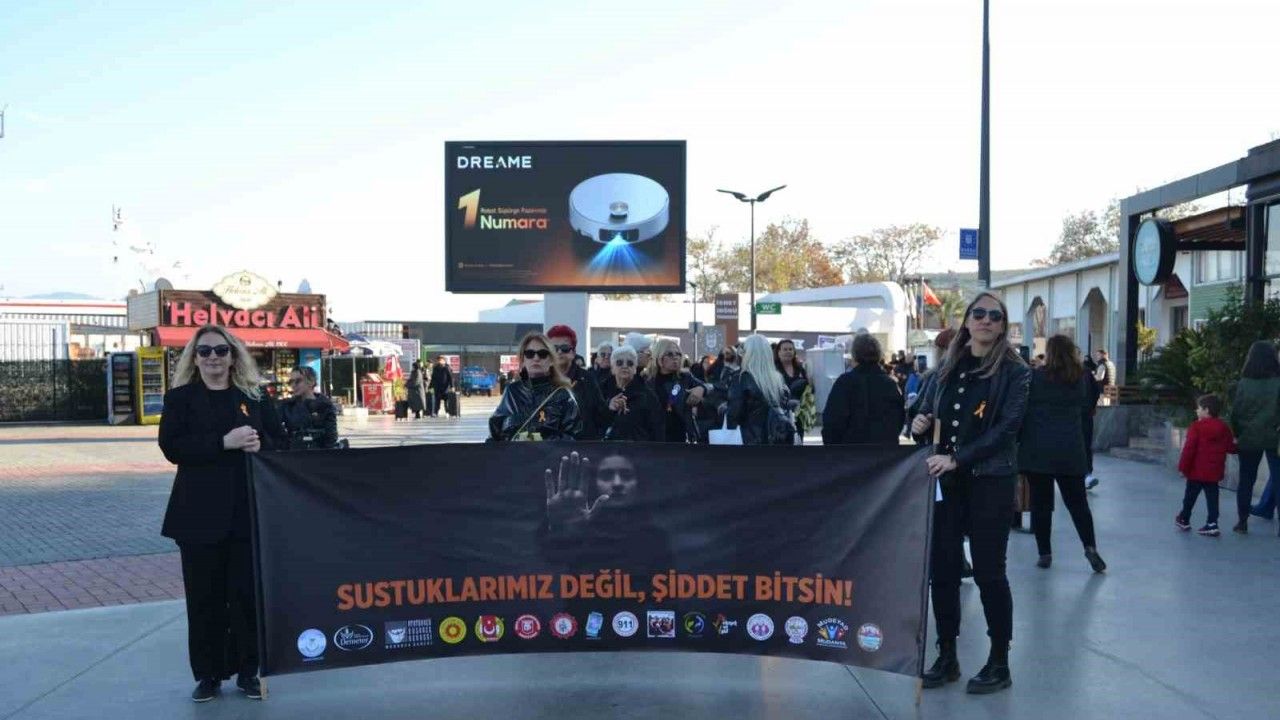 Bursa’nın Mudanya ilçesinde 25 Kasım Kadına Yönelik Şiddete Karşı Uluslararası Mücadele Günü nedeniyle düzenlenen etkinlikte sessiz yürüyüş gerçekleştirilerek, kadın cinayeti kurbanlarını temsilen yere yüzlerce ayakkabı bırakıldı.
