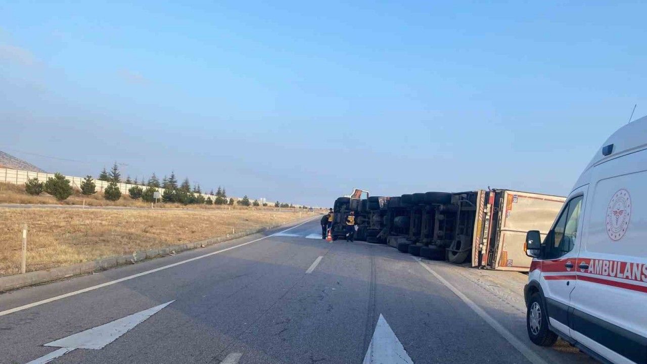 Afyonkarahisar’da kontrolden çıkan saman yüklü tır yol ortasına devrilirken kazada şans eseri ölen ya da yaralanan olmadı.