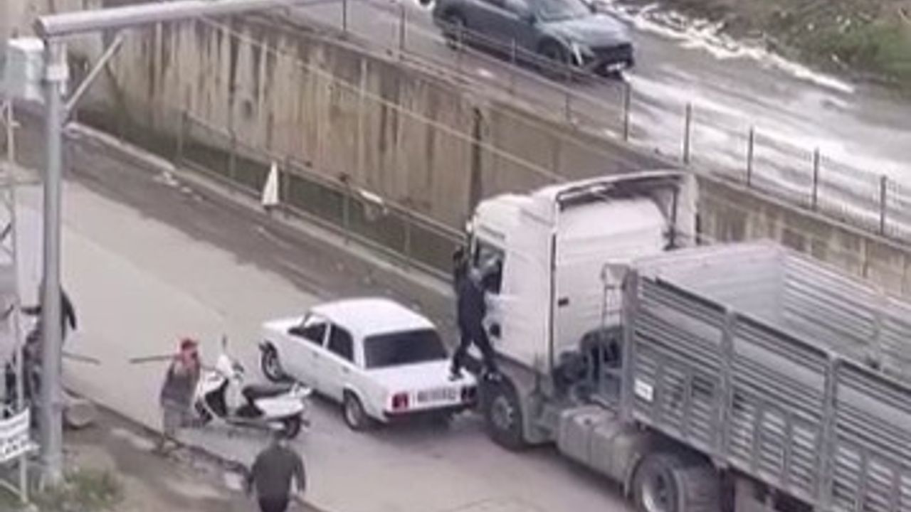 Atakum ilçesinde Kurupelit Mahallesi’nde yaşanan olayda saldırıya uğrayan tır şoförü, can güvenliğini sağlamak için araçtan çıkmayarak içeride kendini korumaya çalıştı. Şüphelilerin art arda sopayla vurduğu anlarda şoför panikle kapıları kilitledi. Olayı fark eden çevredeki vatandaşlar hızla müdahale ederek tarafları ayırdı. Vatandaşların çabasıyla kavga daha fazla büyümeden kontrol altına alındı.