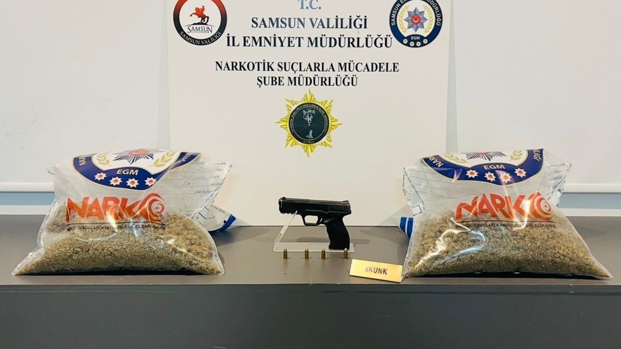 İl Emniyet Müdürlüğü Narkotik Suçlarla Mücadele Şube Müdürlüğü ekipleri, uyuşturucu madde ticareti ve kullanımının önlenmesine yönelik yürütülen çalışmalar kapsamında İlkadım'da belirlenen bir adrese operasyon düzenledi. Şüpheli şahsın üzerinde ve ikametinde yapılan aramalarda 2 kilo skunk, 1 adet ruhsatsız tabanca ve 4 adet tabanca fişeği ele geçirildi. Olayla ilgili gözaltına alınan şahıs hakkında adli işlem başlatıldı. Soruşturma devam ediyor.