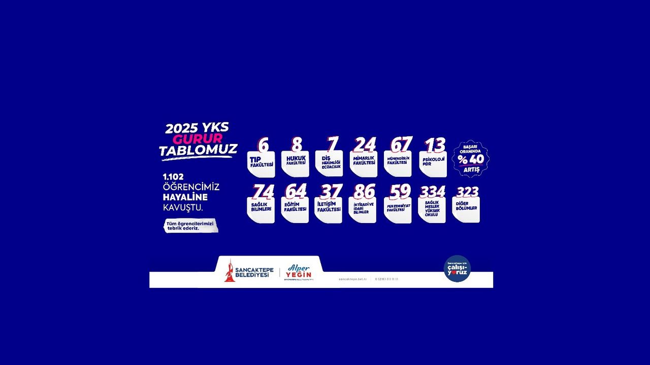 “Belediyemiz bünyesinde uzman hocalarımız eşliğinde üniversiteye hazırlanan ve stresli sürecin sonunda çok güzel bölümlere yerleşen bin 102 gencimizin başarısı bizler için büyük bir gurur. Geçtiğimiz yıla göre başarı oranımızın yüzde 40 artış göstermesi, gençlerimize verdiğimiz desteğin ne kadar kıymetli olduğunu ortaya koyuyor. Sancaktepe'de başlattığımız değişim süreci, eğitim alanında da olumlu sonuçlarını vermeye başladı. İnşallah seneye çok daha büyük başarılarla gençlerimizin sevincine ortak olacağız."