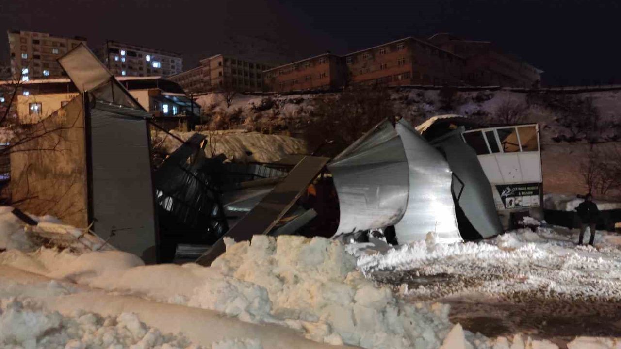 Batman'ın Sason ilçesinde etkili olan yoğun kar yağışı nedeniyle bir iş yerinin çatısı çöktü.