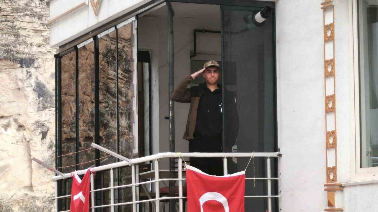 Şehit annesinin bu görüntülerini sosyal medyadan izleyen Tunceli’nin Çemişgezek ilçesinde yaşayan 14 yaşındaki Yunus Emre Akın, anne Karaca’nın çağrısına kayıtsız kalmadı. Akın, çağrıyı gördüğü anda evinin balkonuna Türk bayrağı asarak iki dakika boyunca saygı duruşunda bulundu.
